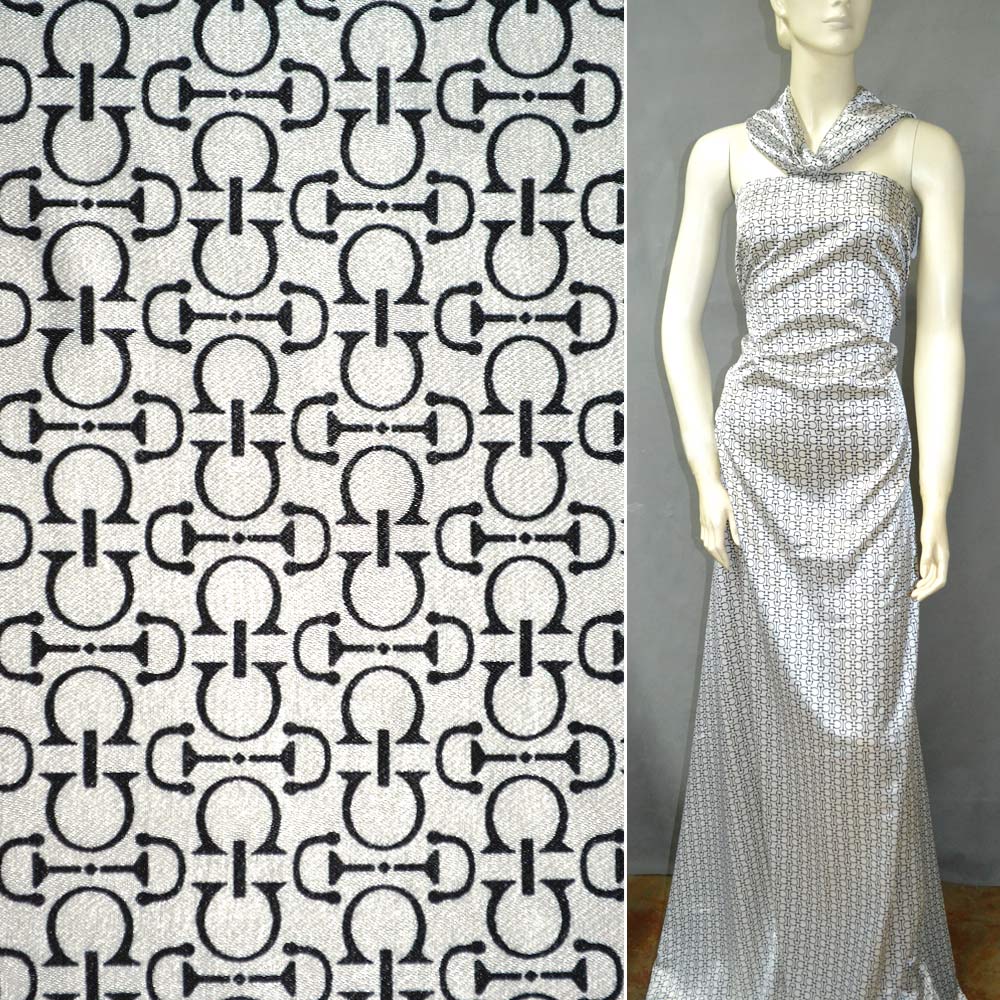 Атлас стрейч молочный с черными подковками ш.120 купить в розницу и оптом