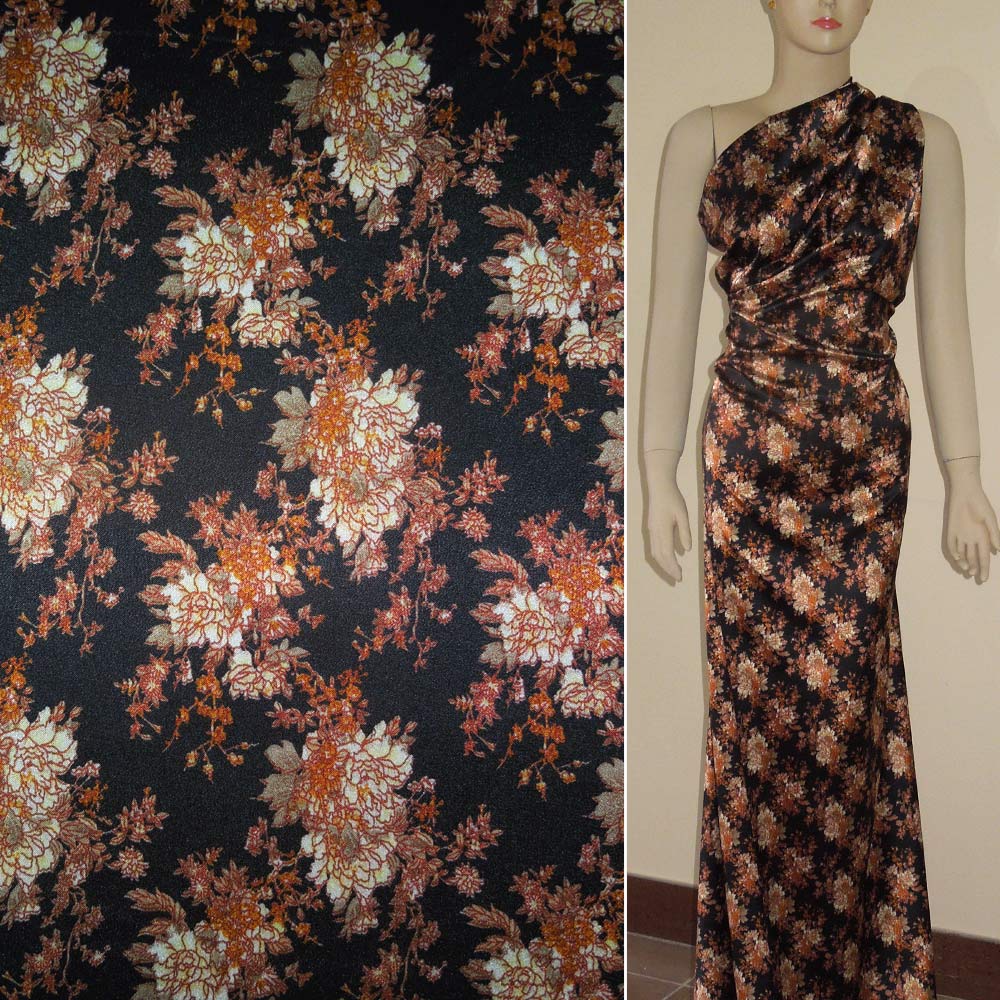 Атлас стрейч шамус черный с коричневыми букетами ш.120 купить в розницу и оптом