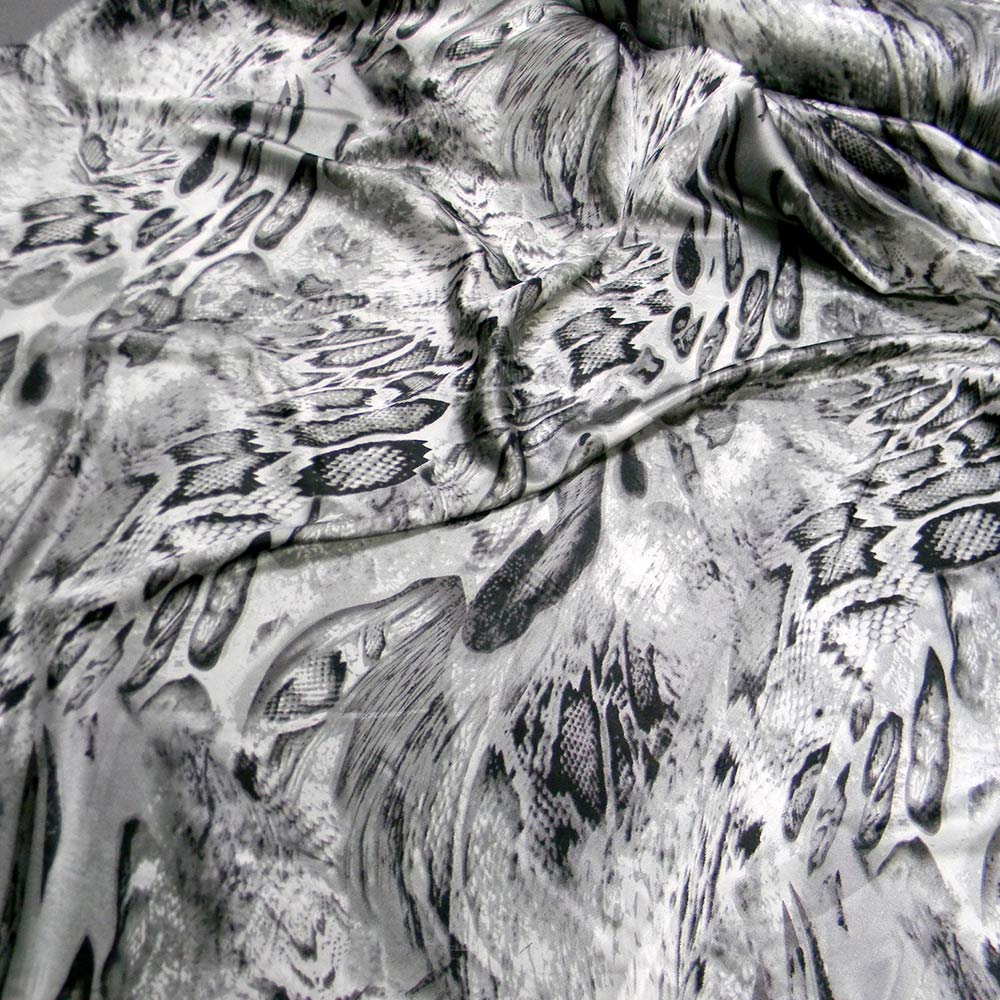 Атлас стрейч светло-серый в черную абстракцию ш.120 купить в розницу и оптом