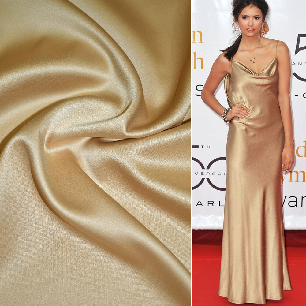 Шелк японский стрейч бежево-золотистый, ш.150. Состав ткани: Полиэстер-67, Шелк-30, Эластан-3. Плотность ткани: 100 г/м.кв. Страна производитель: Южная Корея. Японский шелк на ощупь очень гладкий и мягкий, не вызывает механических повреждений и никаких аллергических реакций. Материал нежно облегает кожу, подчеркивает естественные линии фигуры. В интерьере позволяет создать нарядные акценты, атмосферу праздника и налет аристократизма. Достоинства шелка это высокая износостойкость и прочность, сохранение эстетического вида, гигроскопичность – ткань впитывает воду, формоустойчивость – не садится при правильном уходе и не вытягивается, хорошо драпируется. Что немаловажно, не вызывает аллергию или раздражение кожи.