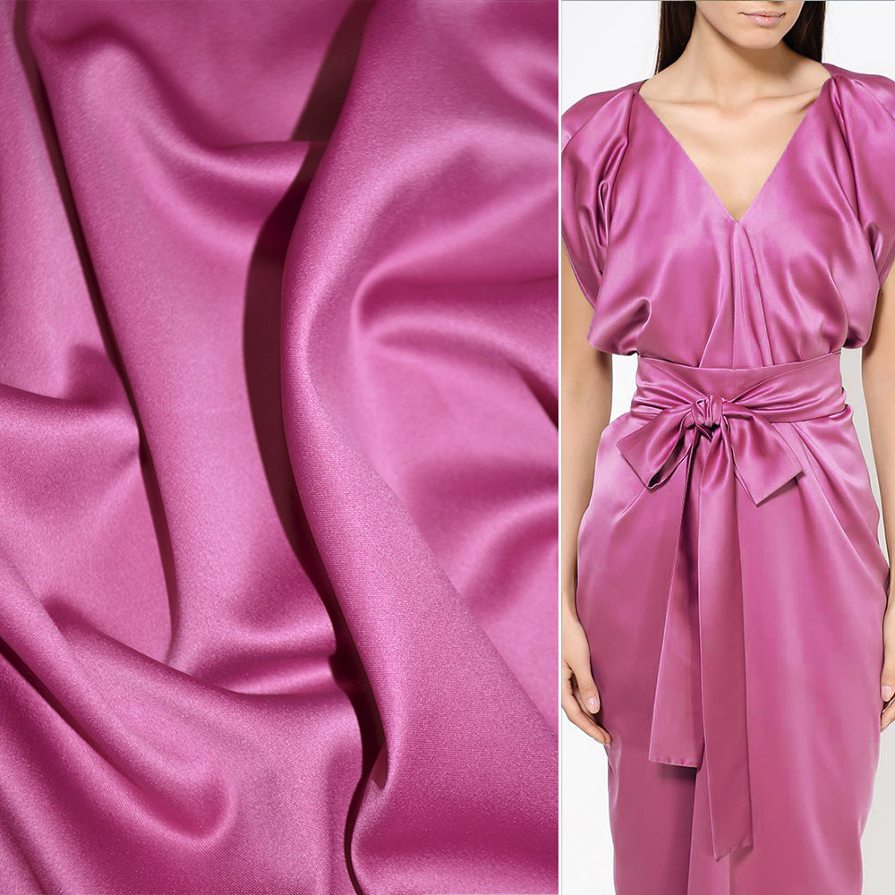 Шелк японский стрейч розовато-лиловый, ш.150. Состав ткани: Полиэстер-97, Эластан-3. Плотность ткани: 100 г/м.кв. Страна производитель: Южная Корея. Японский шелк на ощупь очень гладкий и мягкий, не вызывает механических повреждений и никаких аллергических реакций. Материал нежно облегает кожу, подчеркивает естественные линии фигуры. В интерьере позволяет создать нарядные акценты, атмосферу праздника и налет аристократизма. Достоинства шелка это высокая износостойкость и прочность, сохранение эстетического вида, гигроскопичность – ткань впитывает воду, формоустойчивость – не садится при правильном уходе и не вытягивается, хорошо драпируется. Что немаловажно, не вызывает аллергию или раздражение кожи.