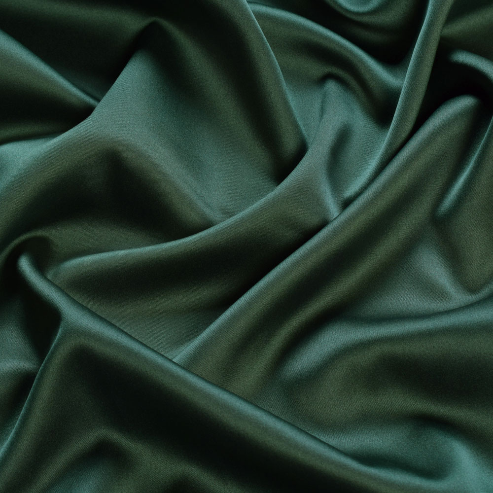 Шелк японский стрейч зеленый темный с черным оттенком, ш.150. Состав ткани: Полиэстер-97, Эластан-3. Плотность ткани: 100 г/м.кв. Страна производитель: Южная Корея. Японский шелк на ощупь очень гладкий и мягкий. Материал нежно облегает кожу, подчеркивает естественные линии фигуры. В интерьере позволяет создать нарядные акценты, атмосферу праздника и налет аристократизма. Достоинства шелка - это высокая износостойкость и прочность, сохранение эстетического вида, гигроскопичность – ткань впитывает воду, формоустойчивость – не садится при правильном уходе и не вытягивается, хорошо драпируется. Что немаловажно, не вызывает аллергию или раздражение кожи.