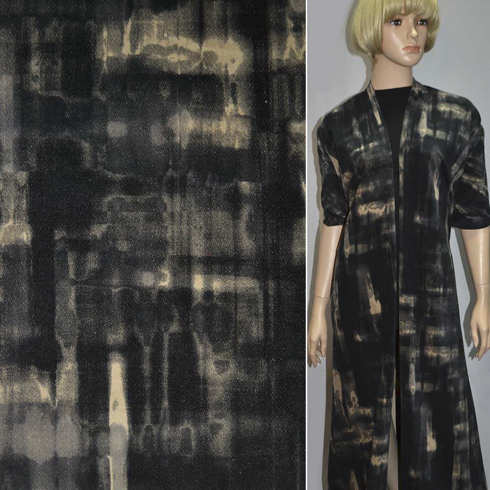 Велюр стрейч черный с бежево-черным абстрактным рисунком, ш. 150 купить в розницу и оптом