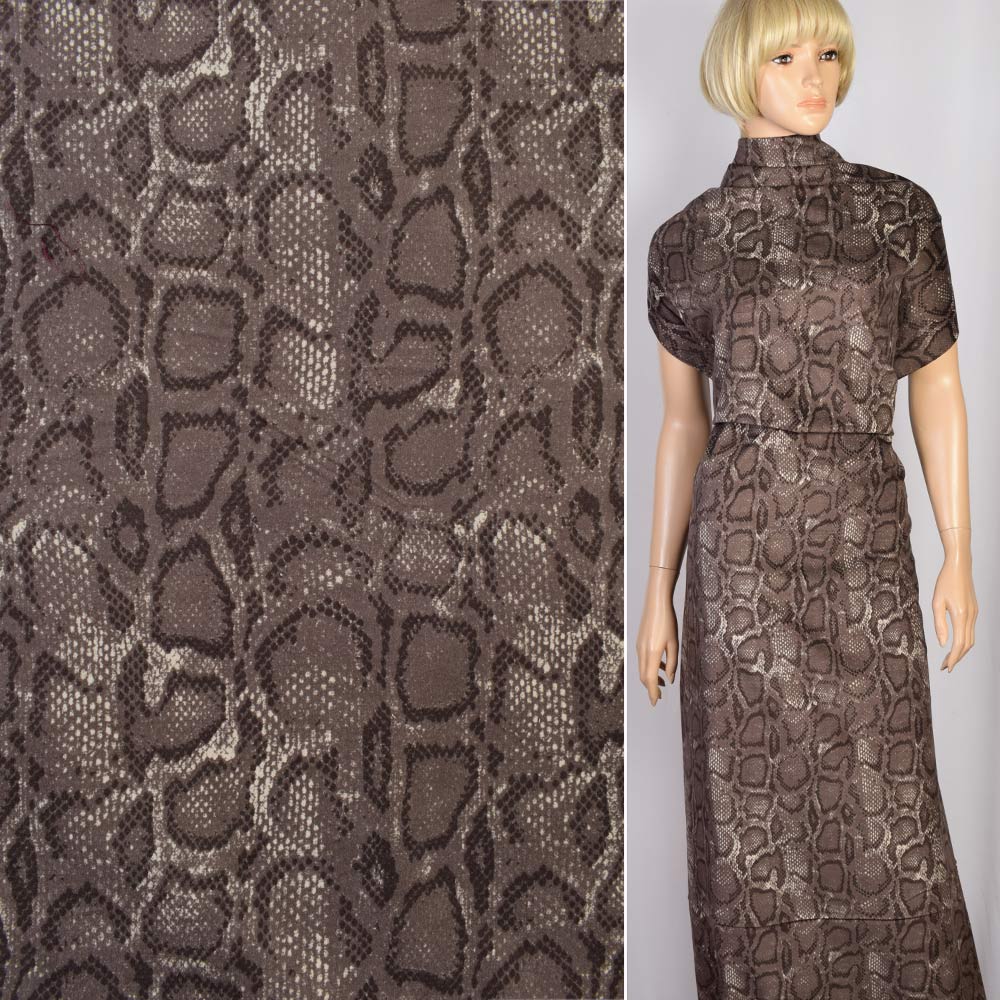 Велюр стрейч коричневый с бежевым "рептилия", ш.145 купить в розницу и оптом