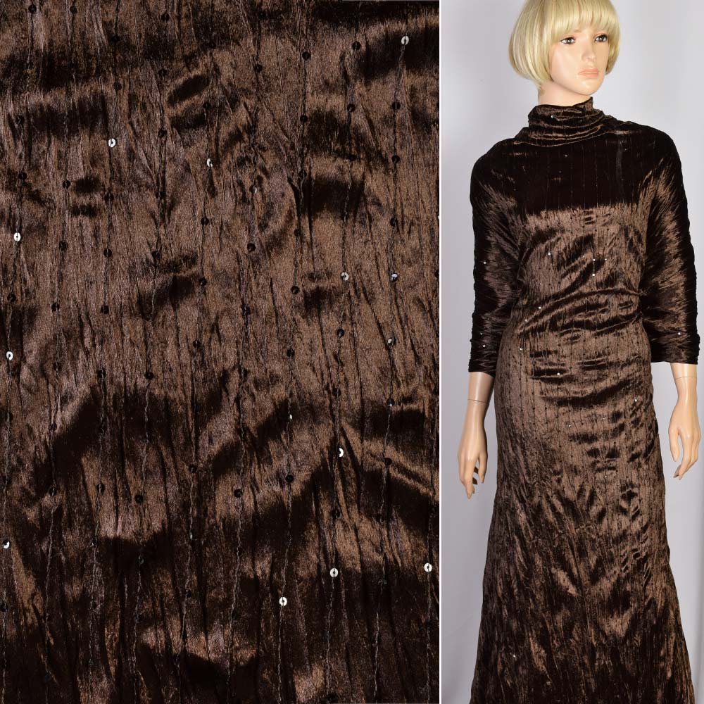 Велюр жатый коричневый темный с пайетками, ш.130 купить в розницу и оптом
