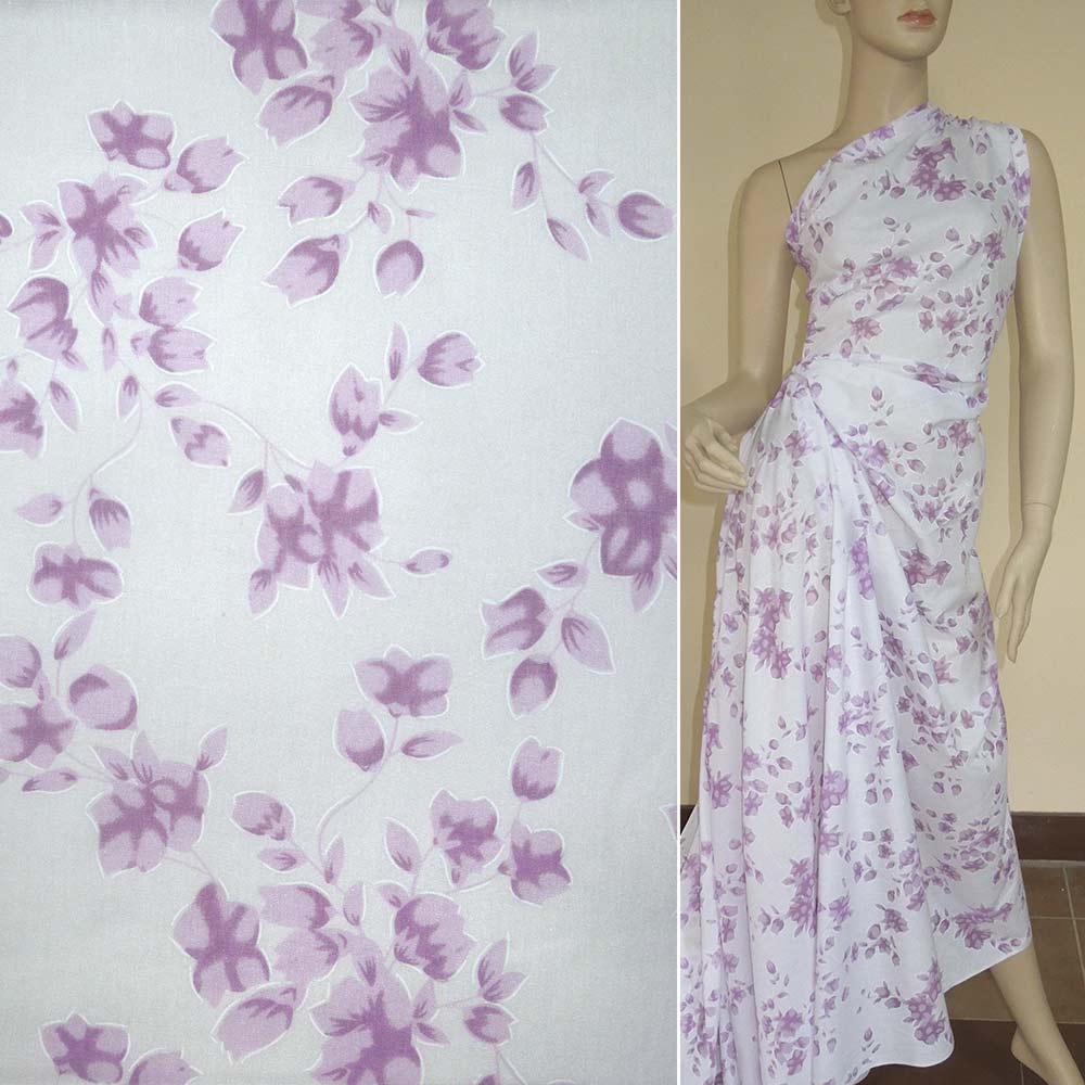 Батист белый в сиреневые цветы ш.150 купить в розницу и оптом