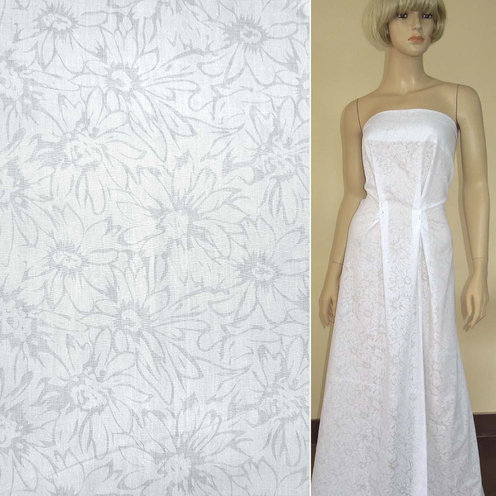 Батист деворе белый с астрами ш.150. Состав ткани: Вискоза-20, Хлопок-80. Плотность ткани: 80 г/м.кв. Страна производитель: Южная Корея. Нежный белый батист с астрами. Используется для изготовления летних платьев, блуз, женского и детского белья, мужских сорочек и т. д. В жаркое время в одежде из батиста будет комфортно, так как ткань обладает отличной воздухопроницаемостью. Ткань приятна при носке, не вызывает раздражения и аллергии. При изготовлении ткани применяется особое переплетение нитей утка и основы, поэтому при раскрое и пошиве, края ткани не обсыпаются.