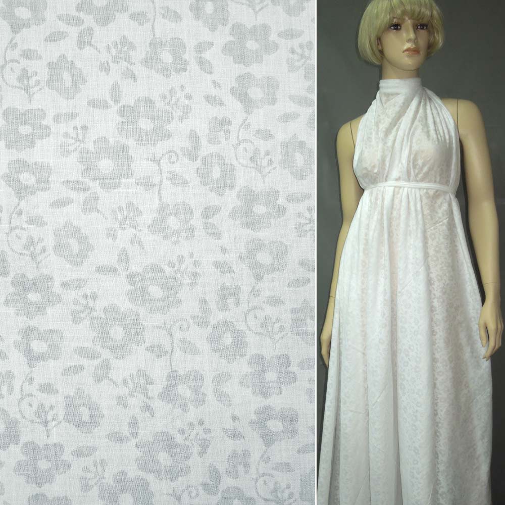 Батист деворе белый в цветы с веточками ш.150 купить в розницу и оптом