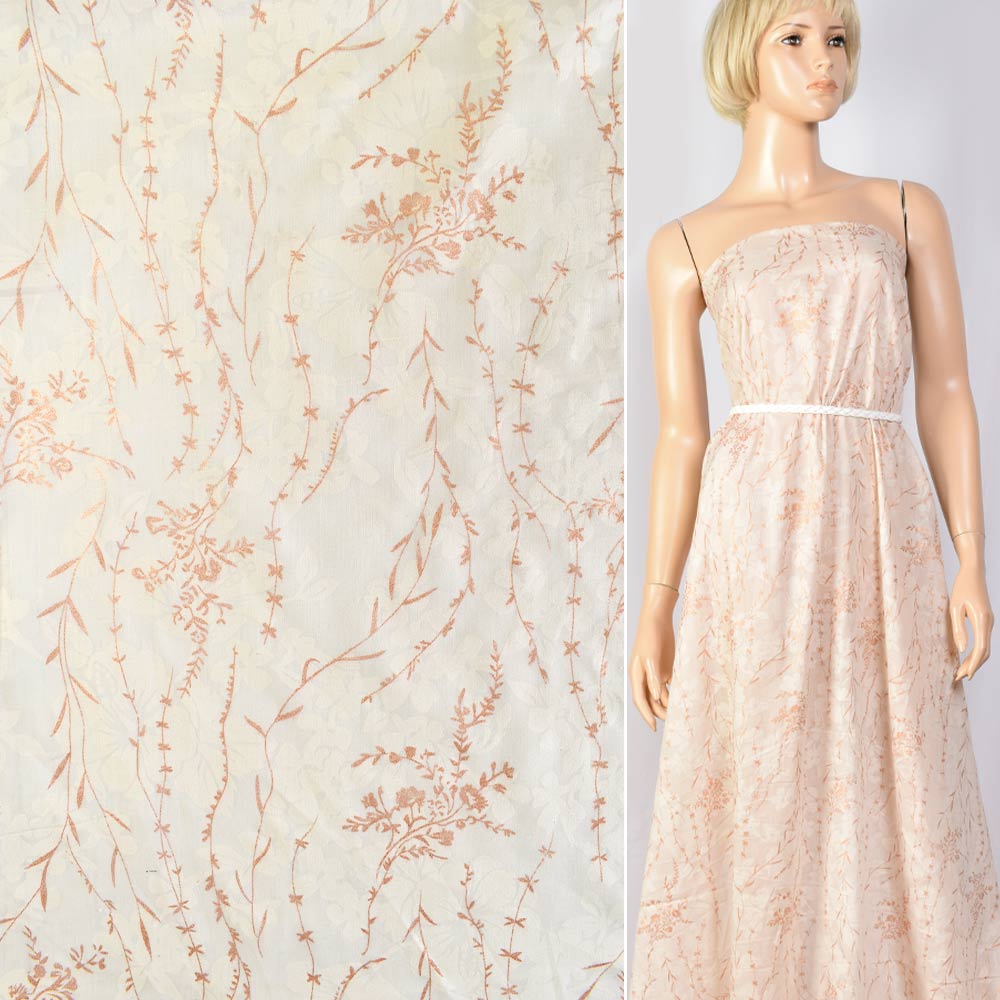Батист деворе бежевый с золотой цветочной печатью, ш.150 купить в розницу и оптом