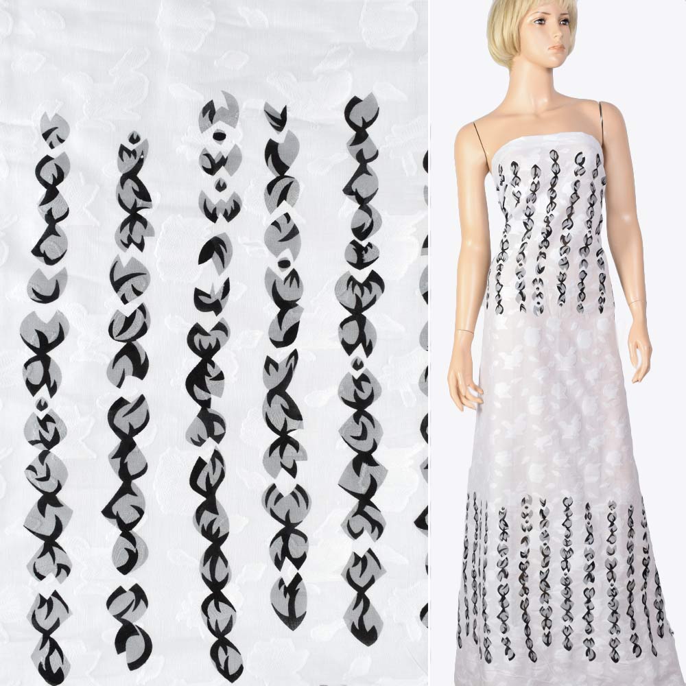 Батист деворе купон белый в черно-серые листья, ш.140 купить в розницу и оптом