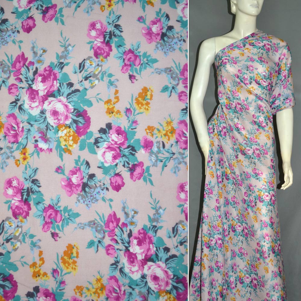Батист диллон бледно-розовый в малиново-желтые цветы ш.140 купить в розницу и оптом