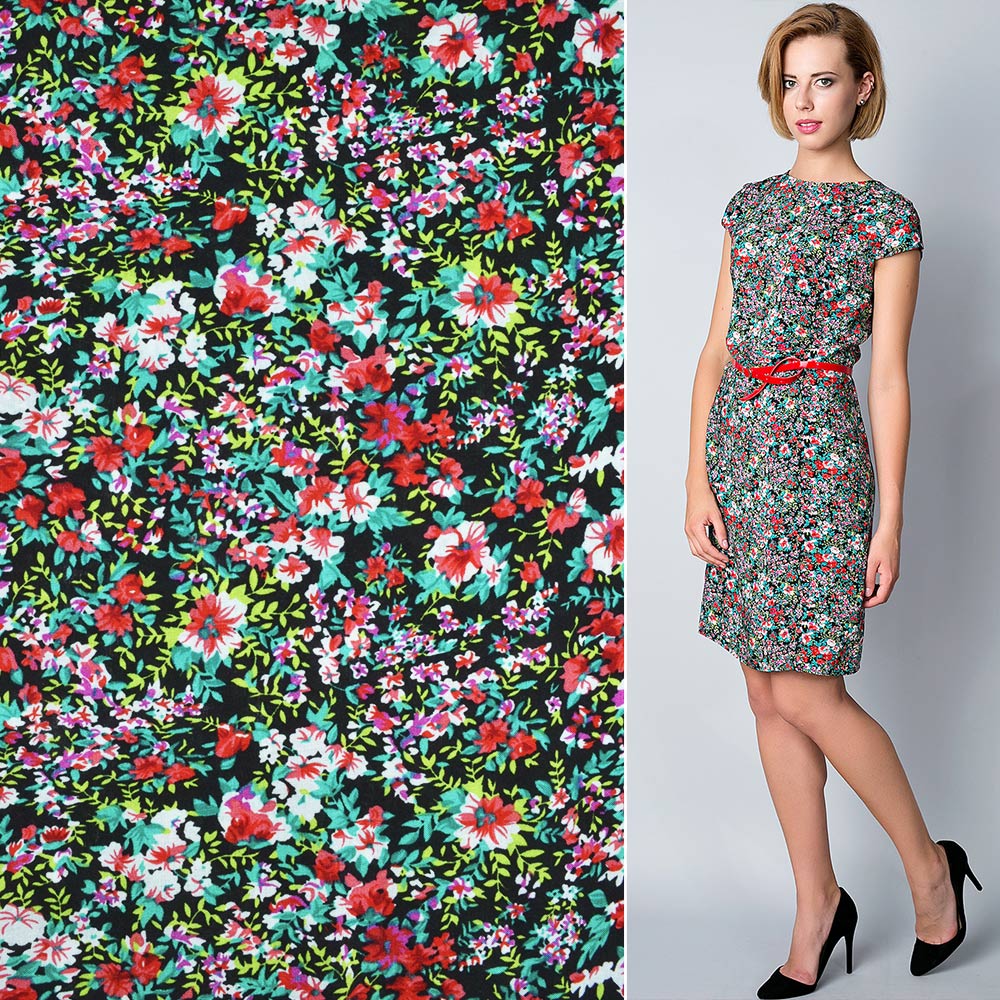 Батист диллон черный с красно-белыми мелкими цветами ш.145 купить в розницу и оптом