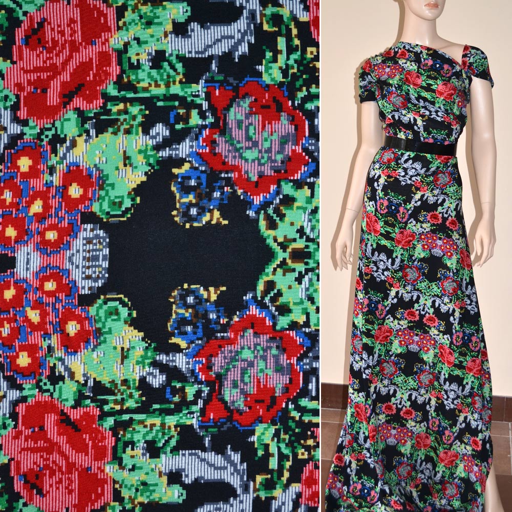 Батист диллон черный с красно-серыми графическими цветами ш.140 купить в розницу и оптом
