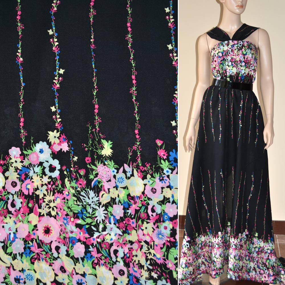 Батист диллон черный,двухсторонний купон розовые цветы ш.140 купить в розницу и оптом