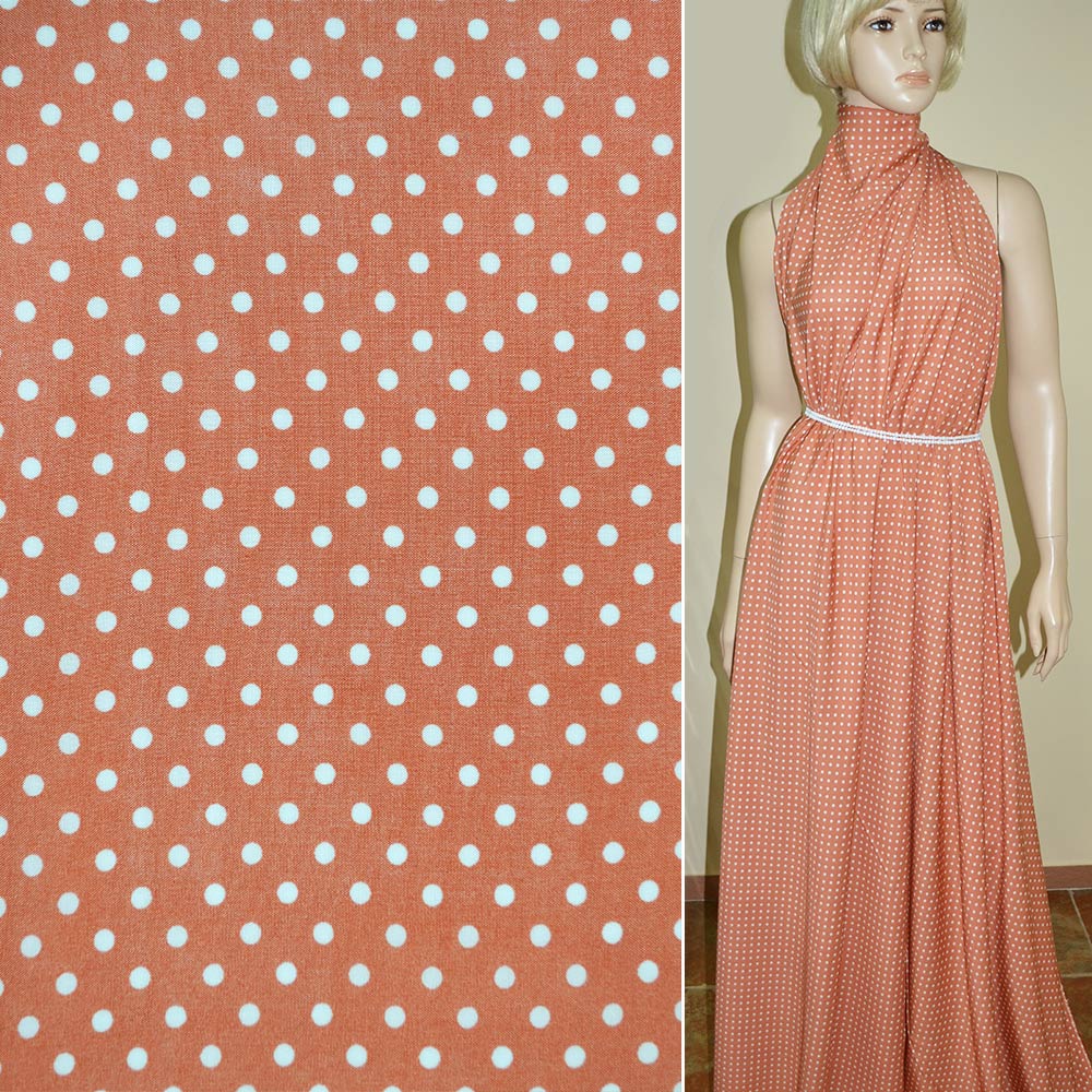 Батист диллон коралловый в белый горох ш.142 купить в розницу и оптом