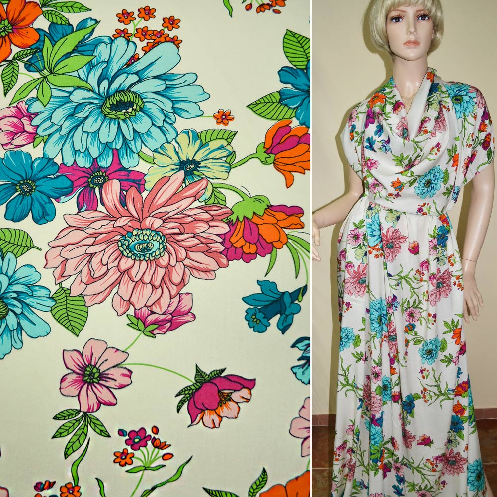 Батист диллон кремовый с розово-голубыми оранжево-малиновыми цветами ш.140 купить в розницу и оптом