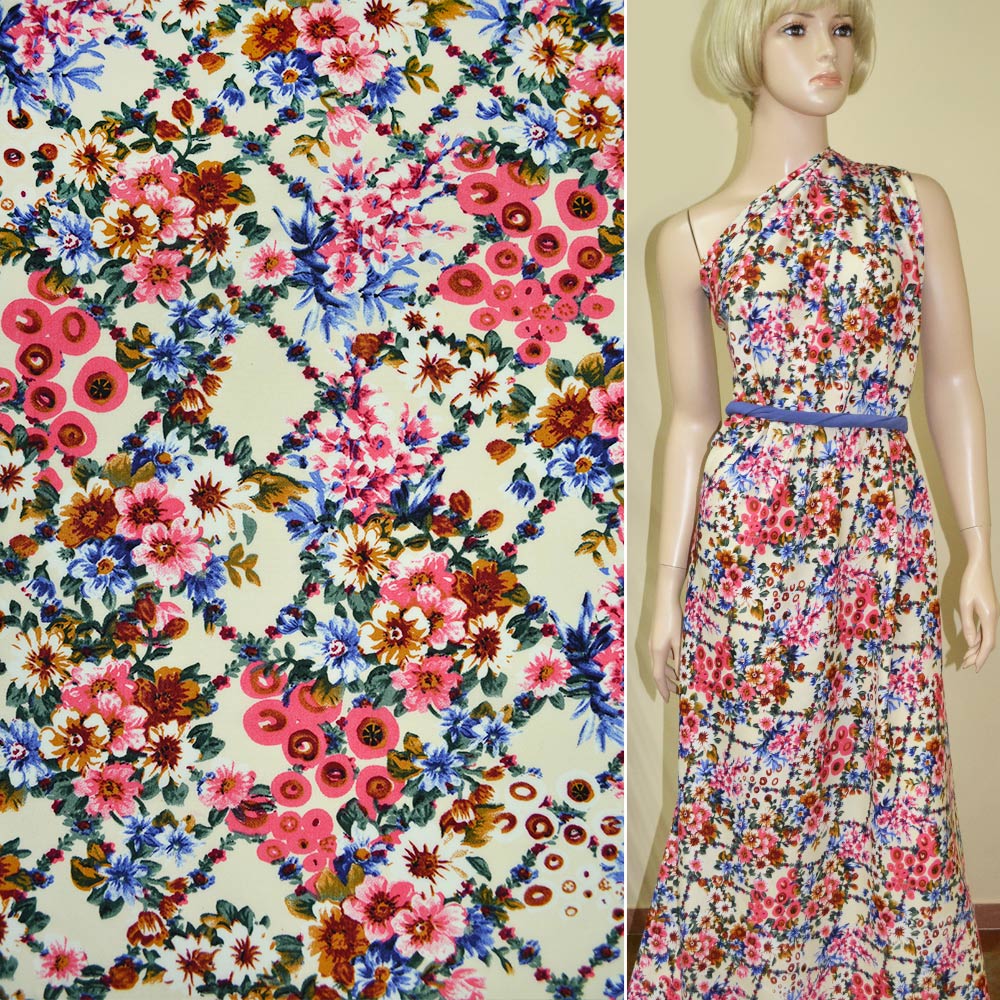 Батист диллон кремовый с розово-синими цветами ш.140 купить в розницу и оптом