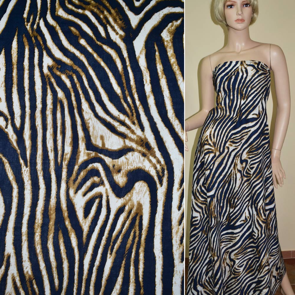 Батист диллон молочно-синий с коричневым принтом зебра ш.140 купить в розницу и оптом