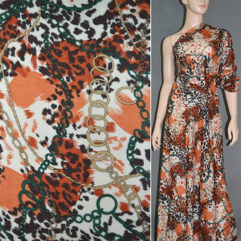 Батист диллон молочно-терракотовый принт леопард с цепями ш.140 купить в розницу и оптом