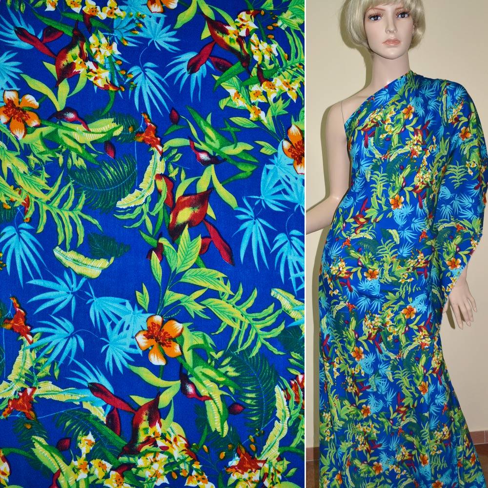 Батист диллон синий с зелено-желтым цветочным рисунком ш.142 купить в розницу и оптом