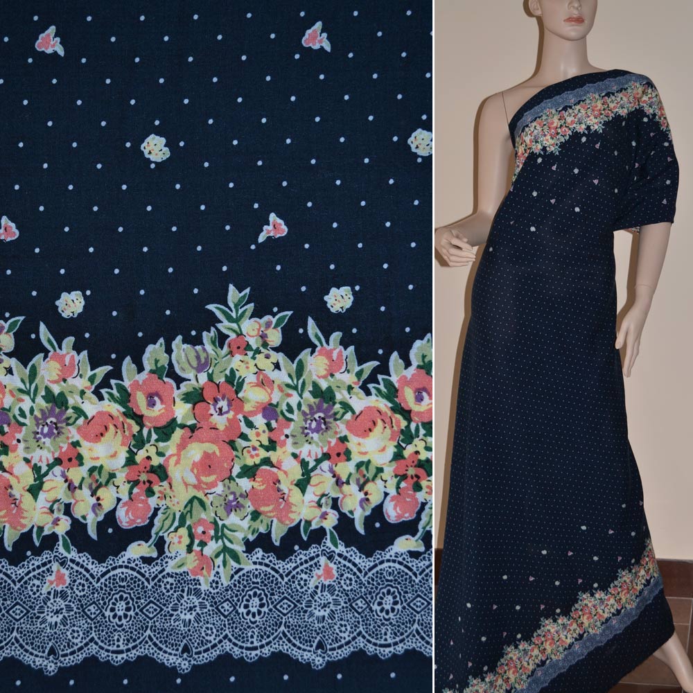 Батист диллон темно-синий с двухсторонним купоном в цветы и мелкий горох ш.140 купить в розницу и оптом