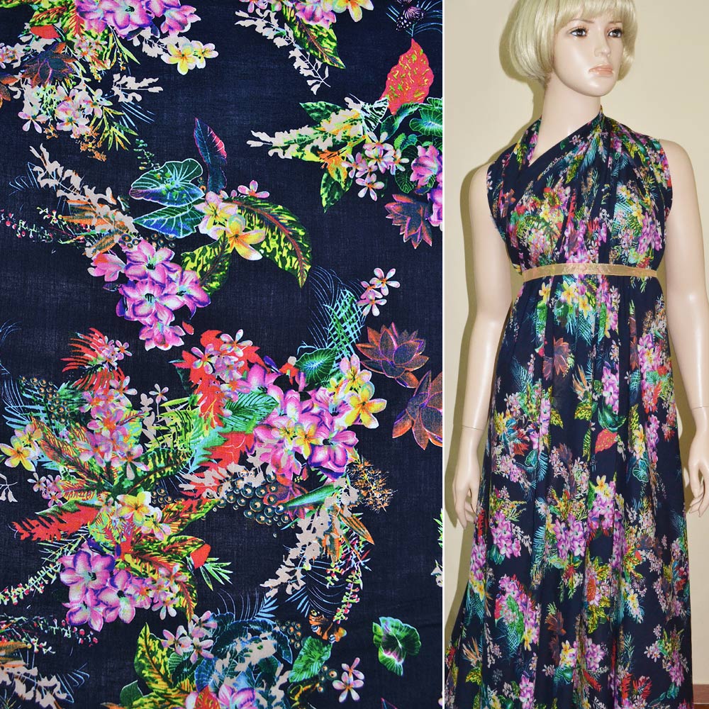 Батист диллон темно-синий с розовыми цветами ш.142 купить в розницу и оптом