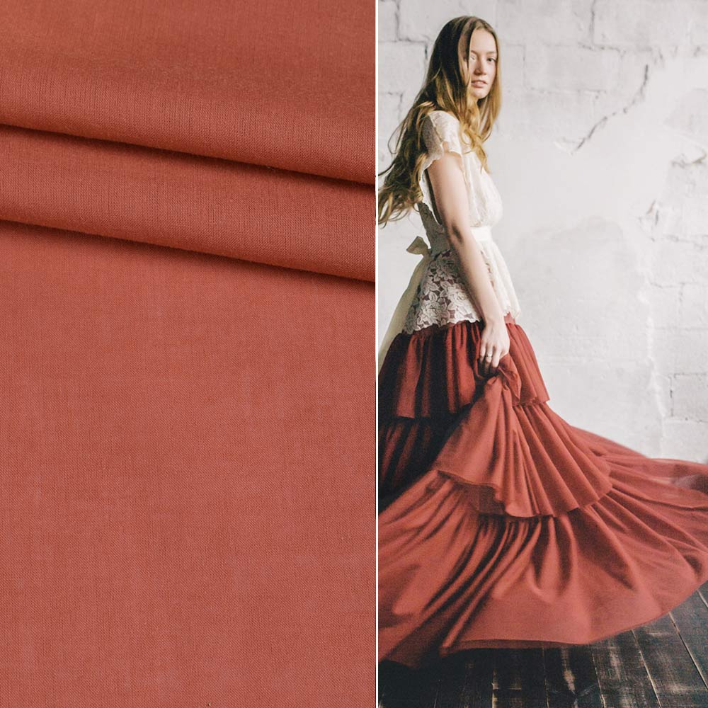 Батист коричнево-красный ш.145. Состав ткани: Хлопок-100. Плотность ткани: 67 г/м.кв. Страна производитель: Южная Корея. Батист представляет собой гладкий, воздушный, приятный на ощупь, нежный материал. Он является экологичным, так как состоит из 100% хлопка. В жаркое время в одежде из батиста будет комфортно, так как ткань обладает отличной воздухопроницаемостью. Ткань приятно лежит на теле, не раздражает чувствительную кожу. Она хорошо кроится, легко шьется, изделия из неё хорошо сохраняют форму. Используется для изготовления летних платьев, блуз, женского и детского белья, мужских сорочек и т. д. Несмотря на легкость и тонкость, вещи из батиста отлично сохраняют форму.