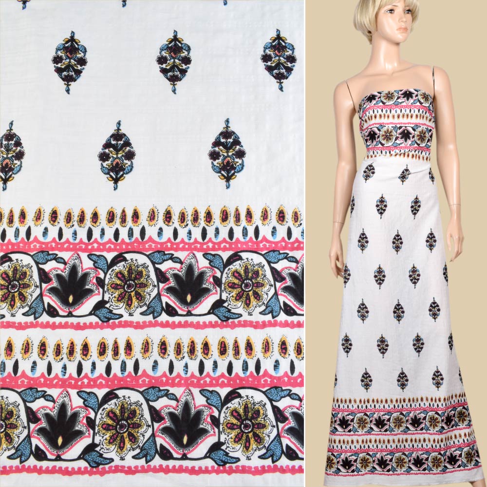 Батист белый, букеты, розово-желтая кайма (купон), ш.145 купить в розницу и оптом