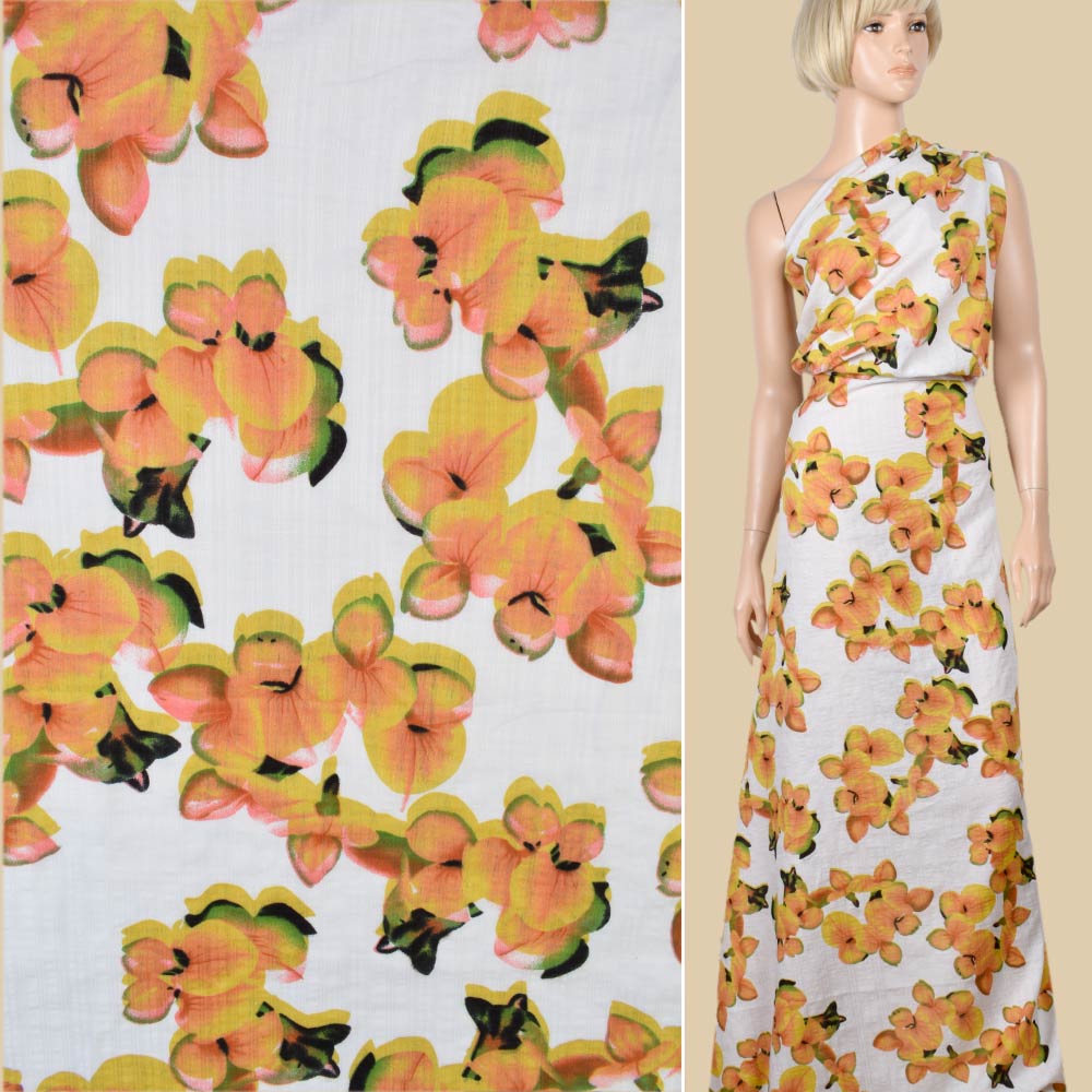 Батист белый, крупные желтые цветы, ш.140 купить в розницу и оптом