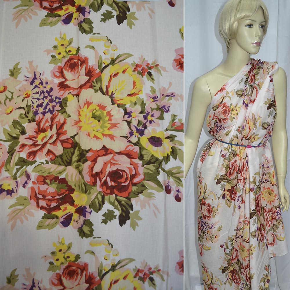 Батист белый с бежево-красными цветами ш.140 купить в розницу и оптом