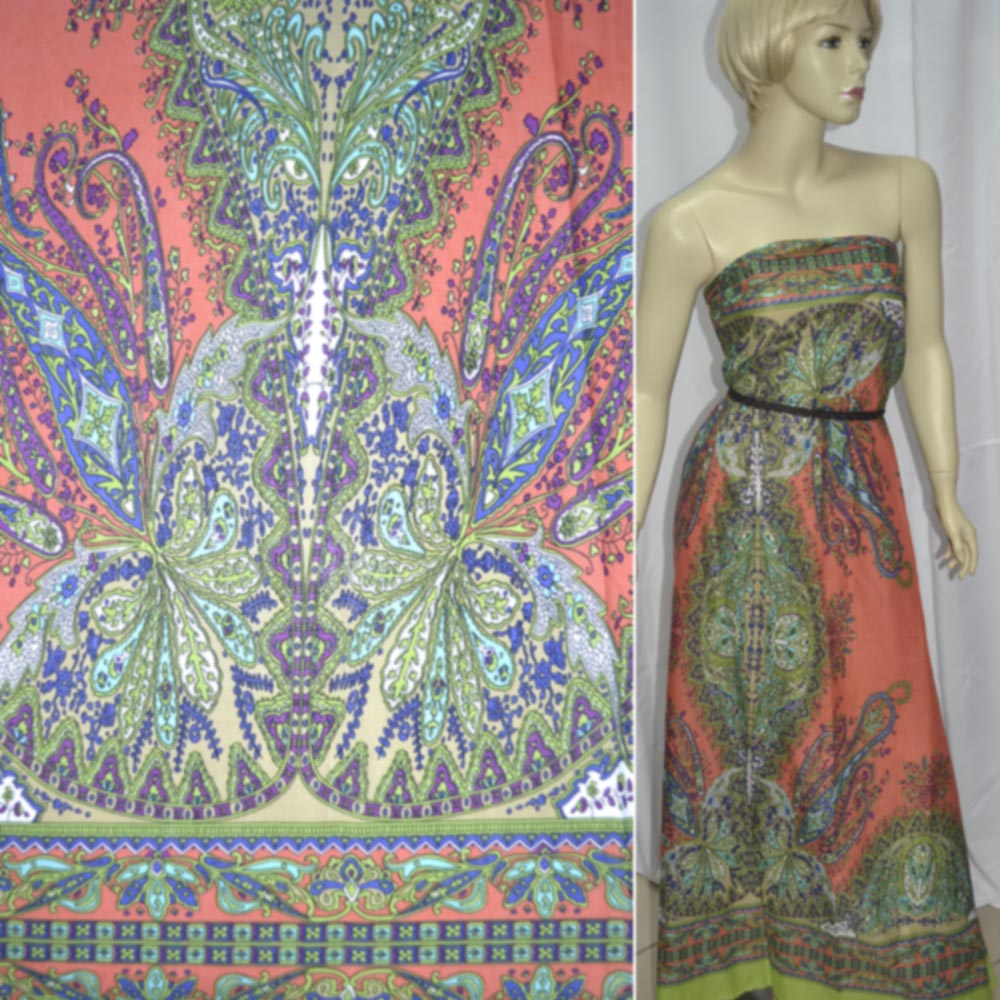 Батист салатно-терракотовый,двухсторонний купон огурцы ш.140 купить в розницу и оптом