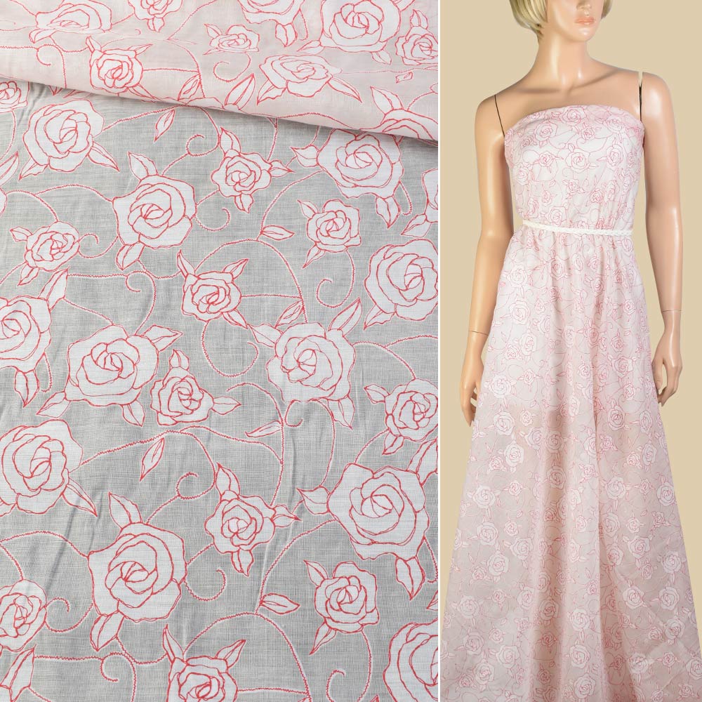 Батист с органзой белый с красными розами ш.145 купить в розницу и оптом