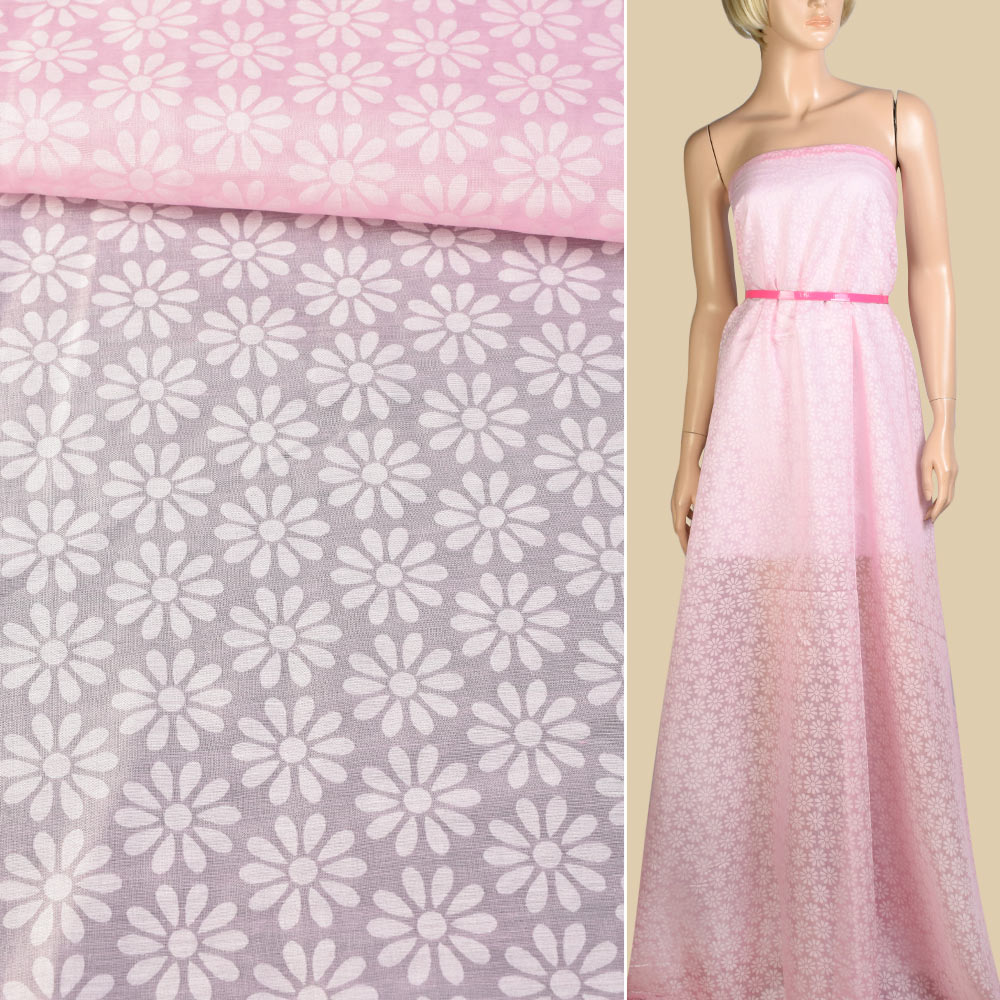 Батист с органзой розовый в ромашки ш.150 купить в розницу и оптом