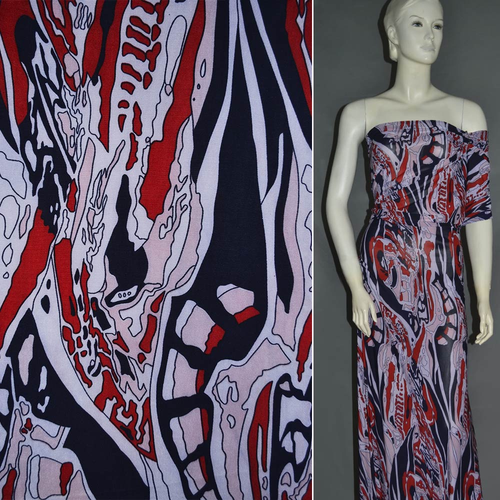 Микролайкра абстрактный рисунок сине-фиолетовый с красным ш.150 купить в розницу и оптом