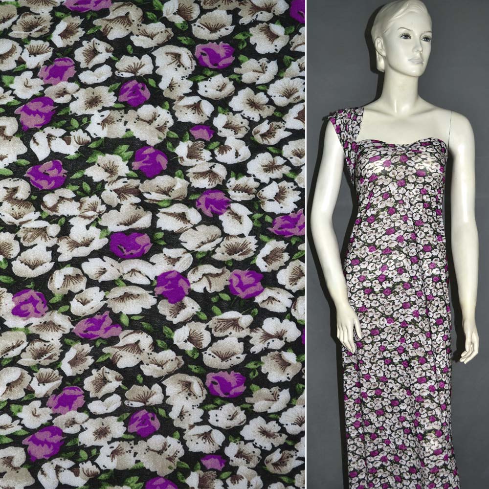 Микролайкра черная с молочно-сиреневыми цветами ш.164 купить в розницу и оптом