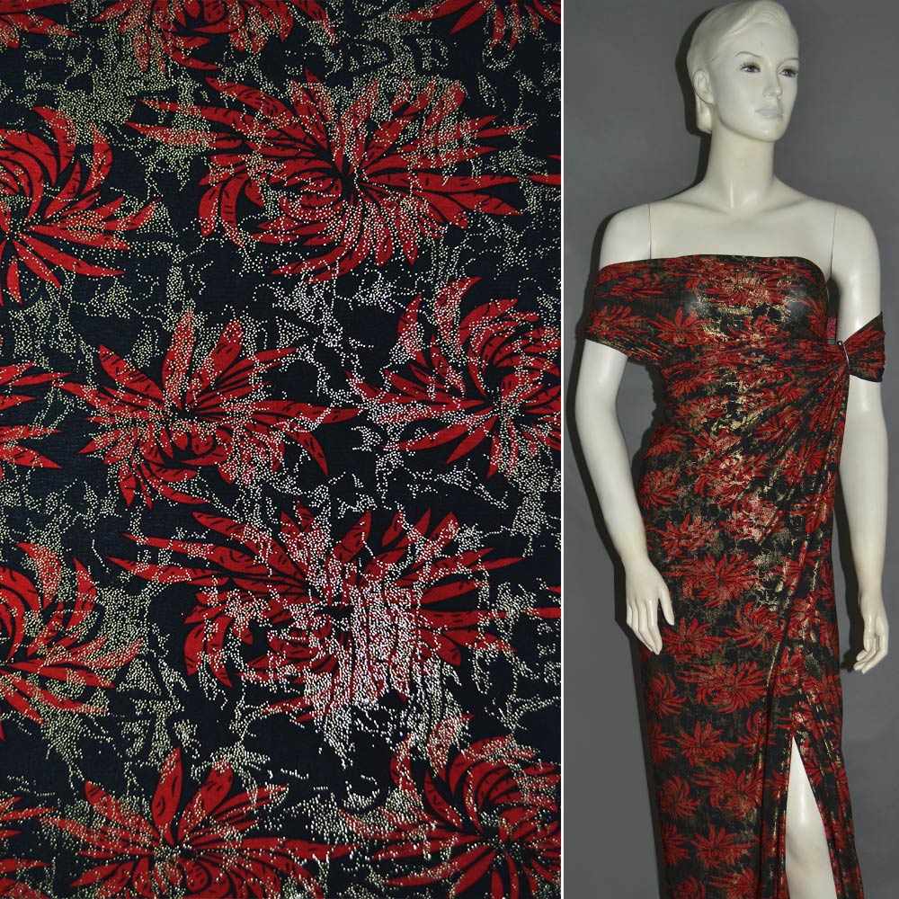 Микролайкра черная с напылением с цветами красными ш.150 купить в розницу и оптом