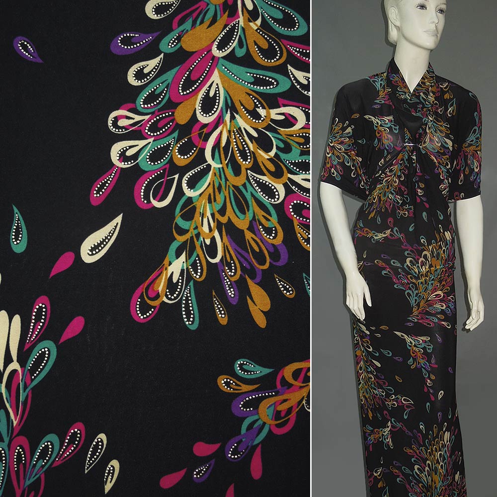Микролайкра черная с напылением, с цветными перьями ш.150 купить в розницу и оптом