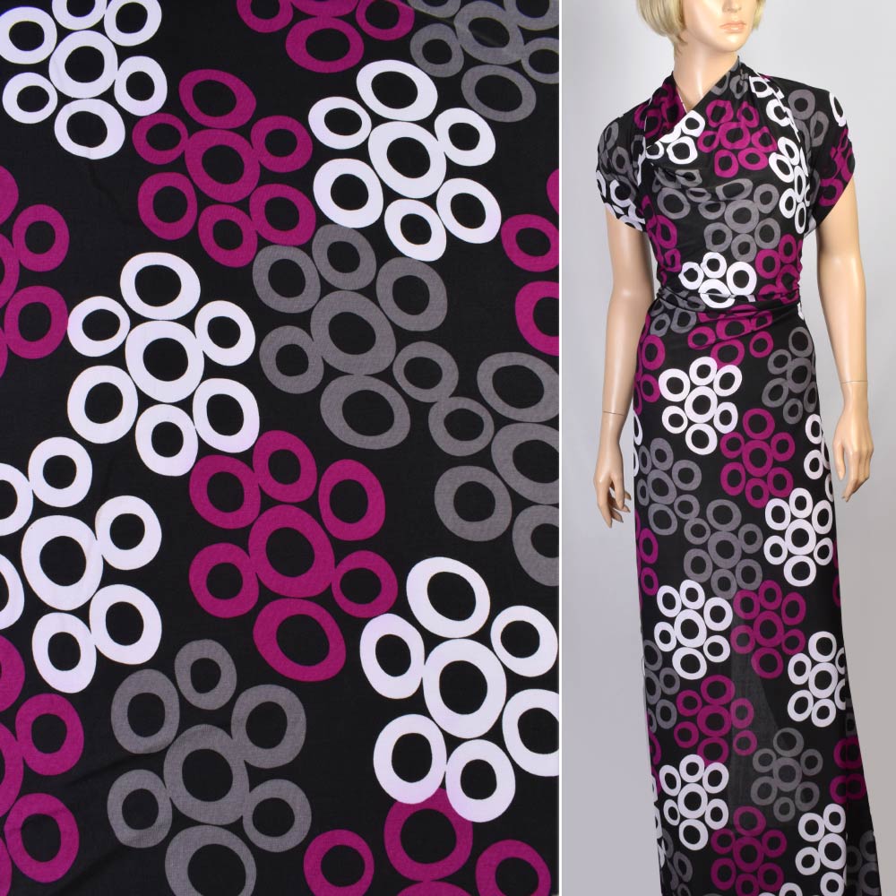 Микролайкра черная в кольца белые, серые, сиреневые ш.160. Состав ткани: Полиэстер-95, Эластан-5. Плотность ткани: 178 г/м.кв. Страна производитель: Южная Корея. Микролайкра - ткань с очень высокой эластичностью. Полотно легкое, мягкое, приятное на ощупить, достаточно тонкое, но при этом плотное и не прозрачное. Легко растягивается и быстро возвращается в прежнюю форму. Материал устойчив к загрязнениям и легко отстирывается. Микролайкра не мнется, хорошо драпируется, ложиться мягкими складками. Ткань износостойкая, воздухопроницаемая.
