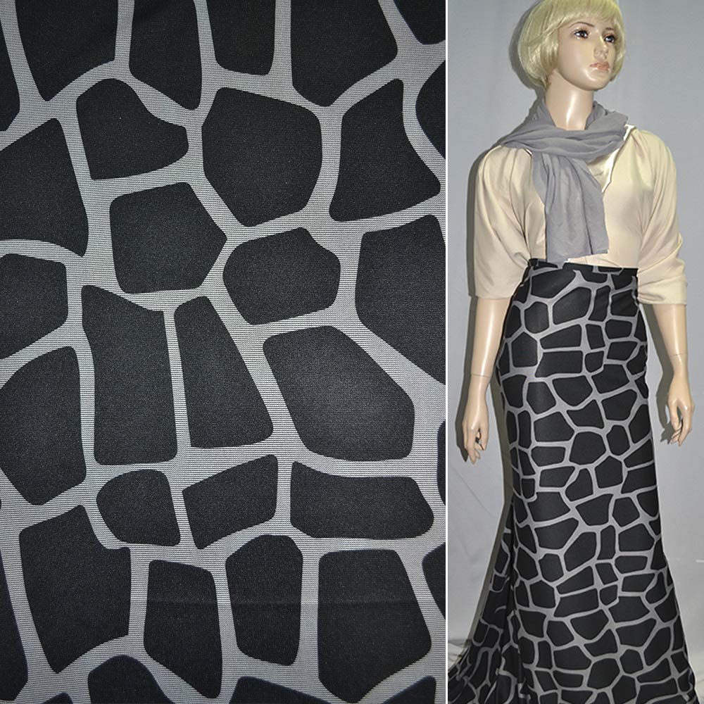 Трикотаж джерси черный с абстрактным серым рисунком ш.140 купить в розницу и оптом