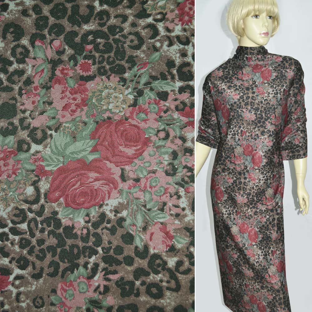 Трикотаж джерси коричнево-черный принт леопард бордовые розы ш.150 купить в розницу и оптом