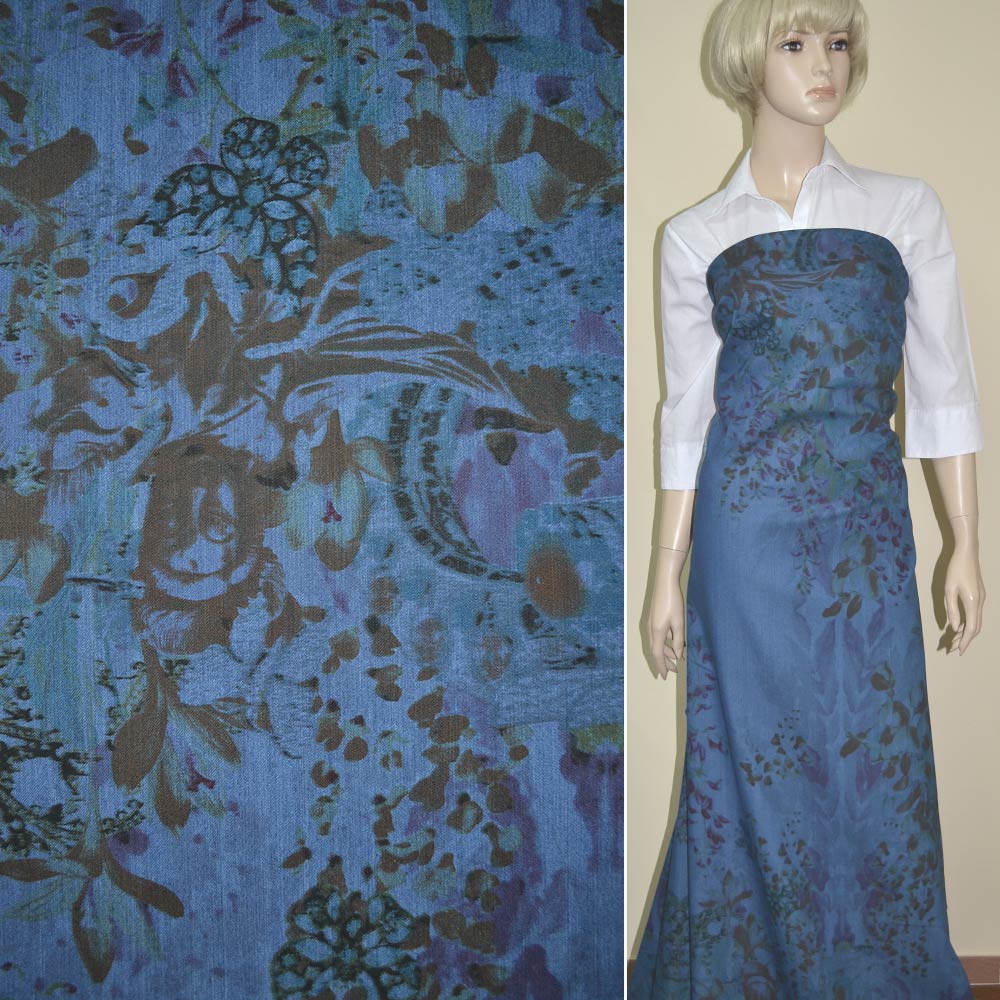 Джинс стрейч сине-голубой с абстрактным рисунком (принт) ш.160 купить в розницу и оптом