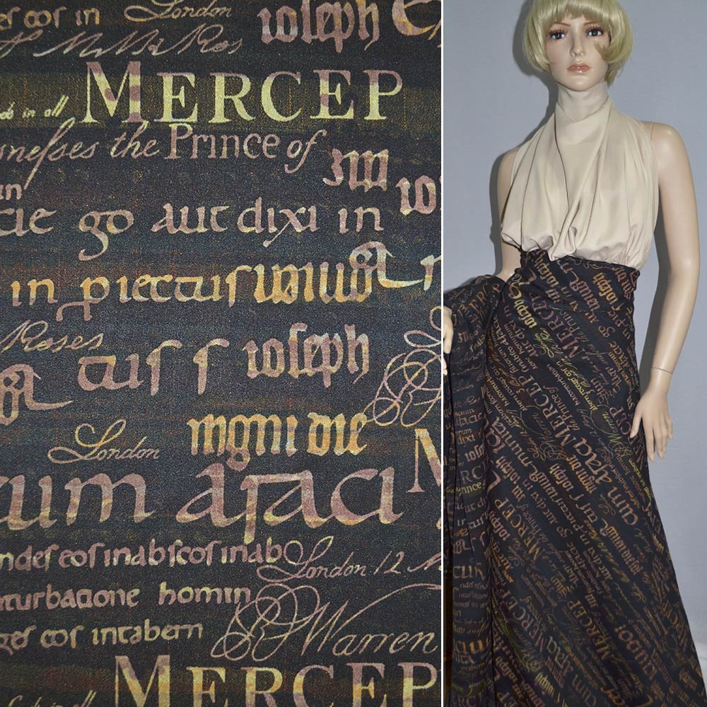 Коттон деним стрейч с флоком газета коричневый купить в розницу и оптом