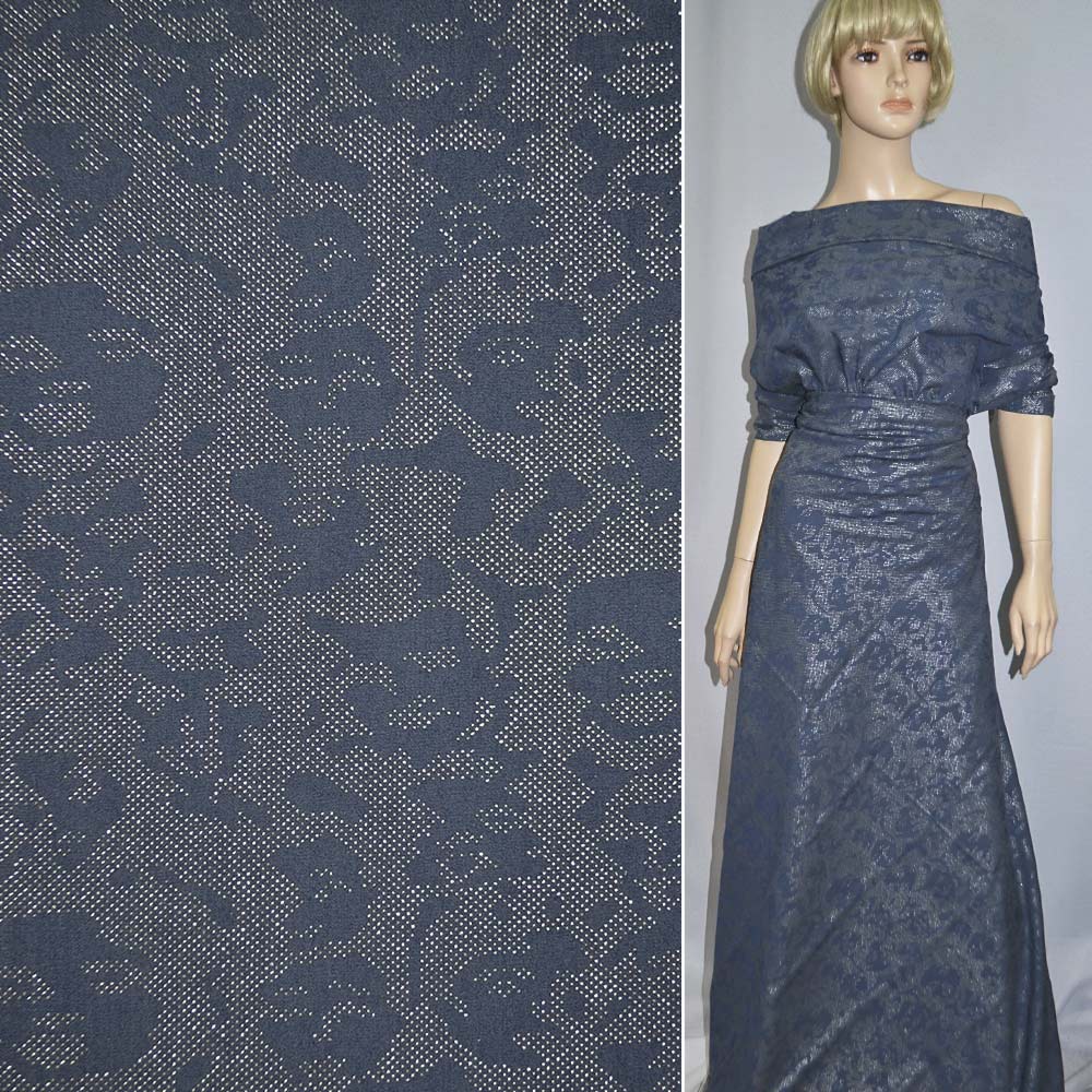 Коттон деним с серебристым напылением точки синий ш.152 купить в розницу и оптом