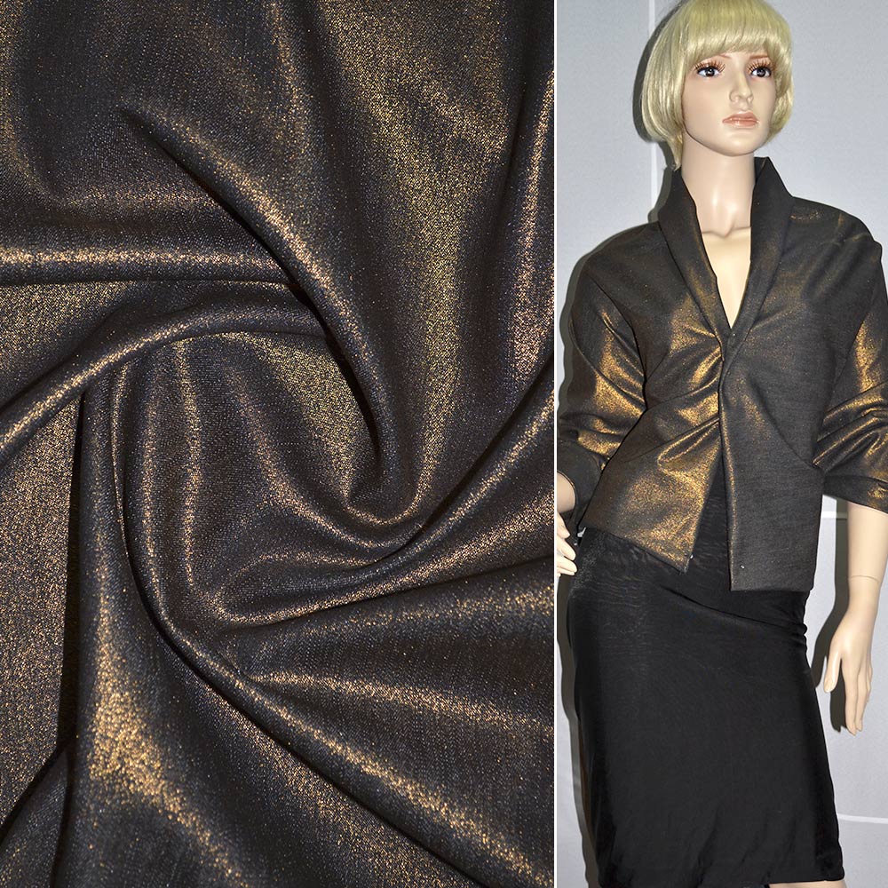 Коттон стрейч черный с золотым напылением, рубчик ш.150 купить в розницу и оптом