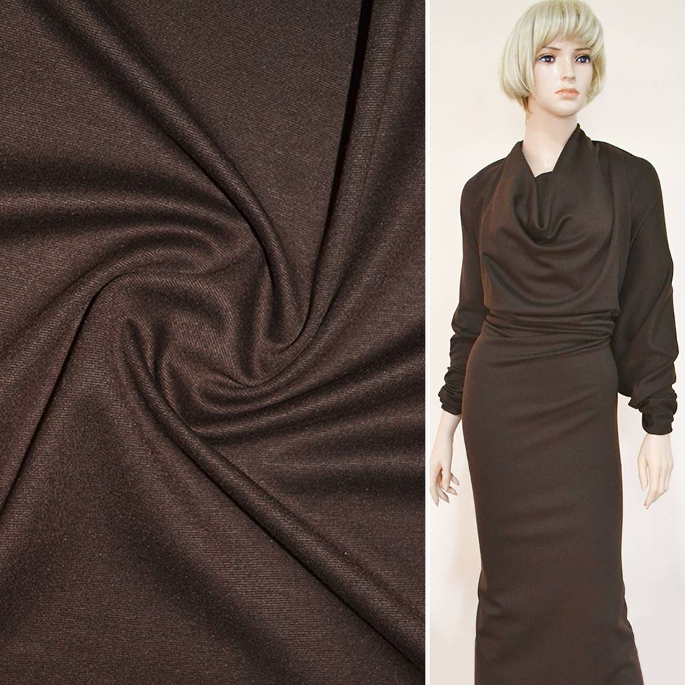 Трикотаж французький костюмний коричневый ш.150. Состав ткани: Вискоза-25, Полиэстер-70, Эластан-5. Плотность ткани: 277 г/м.кв. Страна производитель: Германия. Трикотаж - это мягкая плотная материя, не прозрачная. Приятная на ощупь, комфортная в носке. Благодаря содержанию синтетических материй, материал более износостойкий и надолго сохраняет свой первоначальный вид. Ткань отличается своей приятной текстурой, хорошей растяжимостью, практически не мнется, хорошо драпируется. Трикотаж достаточно простой в уходе. Используется для пошива платьев, спортивных костюмов, легких жакетов, поло, футболок и многого другого.