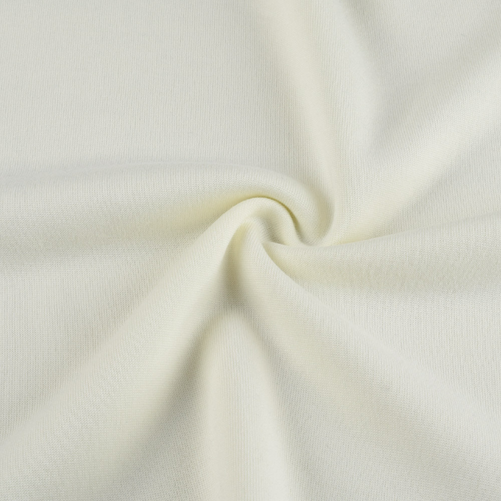 Трикотаж на флисе молочный ш.165. Состав ткани: Полиэфир-100. Плотность ткани: 203 г/м.кв. Страна производитель: Южная Корея. Трикотаж - это мягкая плотная материя. Лицевая сторона гладкая трикотажная, изнаночная флисовая. Приятная на ощупь, комфортная в носке. Благодаря содержанию синтетических материй, материал более износостойкий и надолго сохраняет свой первоначальный вид. Ткань отличается своей приятной текстурой, хорошей растяжимостью, практически не мнется. Трикотаж достаточно простой в уходе. Используется для пошива платьев, спортивных костюмов, легких жакетов, поло, футболок и многого другого.