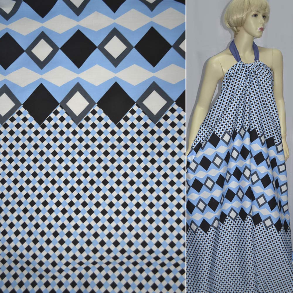 Коттон белый с черно-голубыми мелкими ромбами ш.145 купить в розницу и оптом
