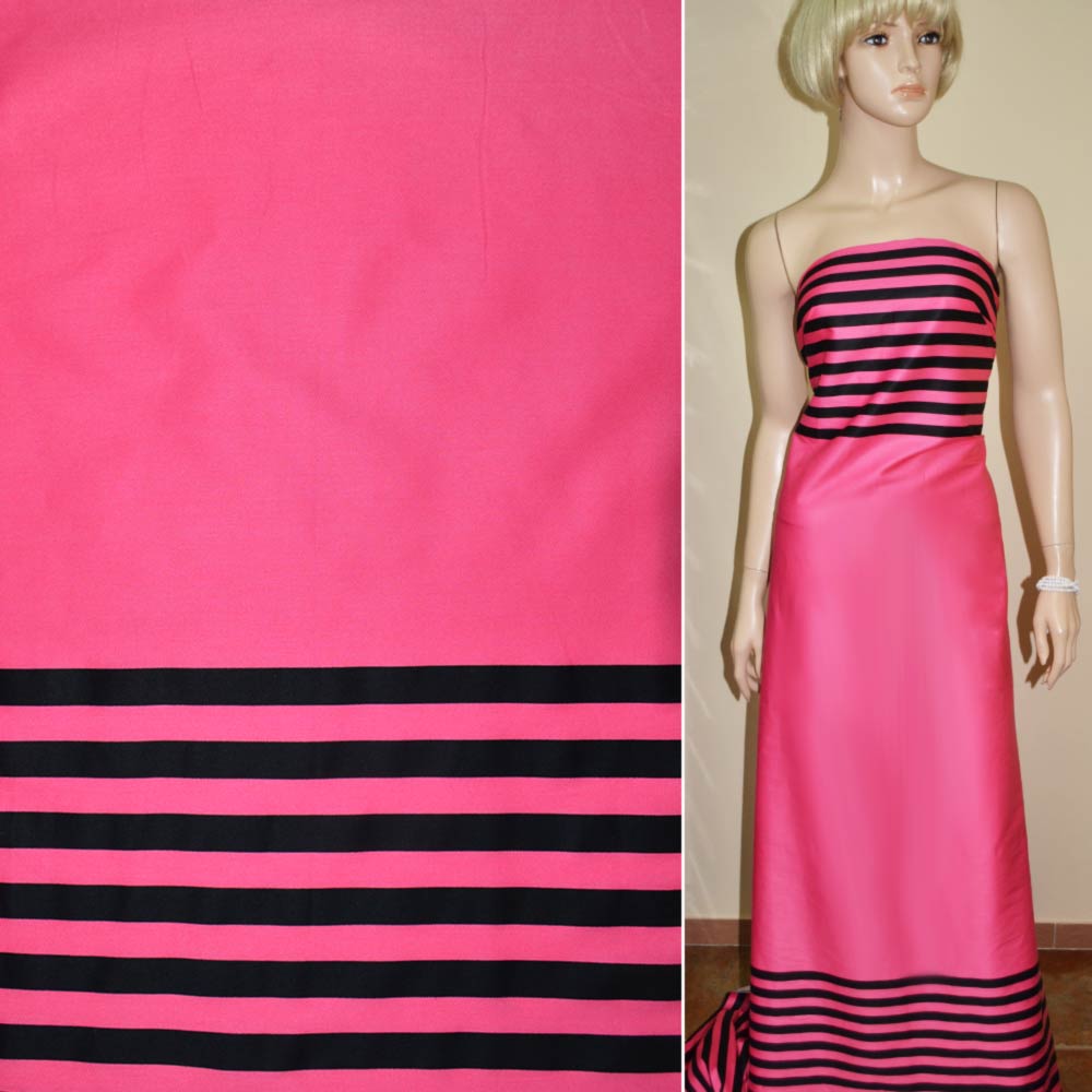 Коттон розовый,двухсторонний купон черная полоска ш.145 купить в розницу и оптом