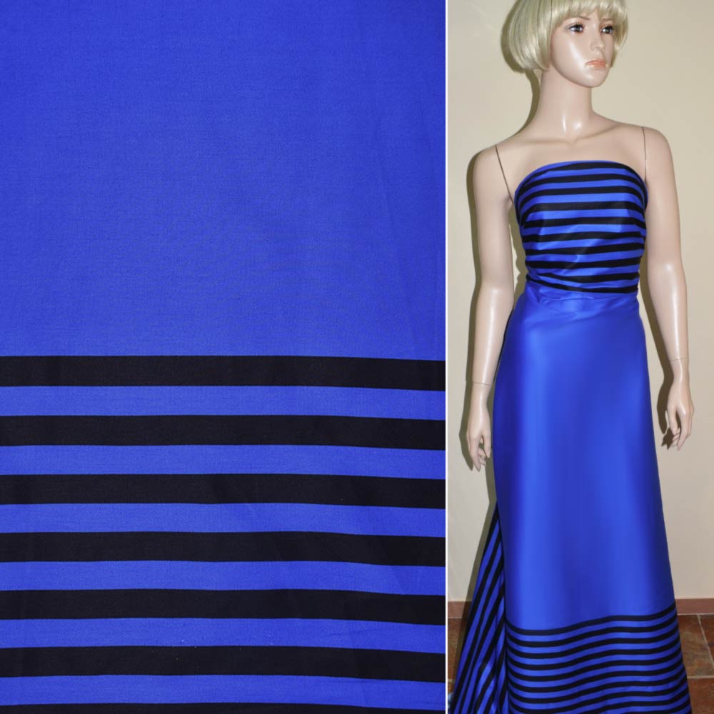 Коттон светло-синий,двухсторонний купон черная полоска ш.145 купить в розницу и оптом