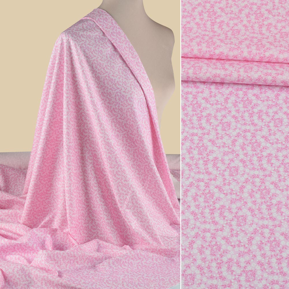 Коттон розовый в мелкие белые цветочки ш.150 купить в розницу и оптом